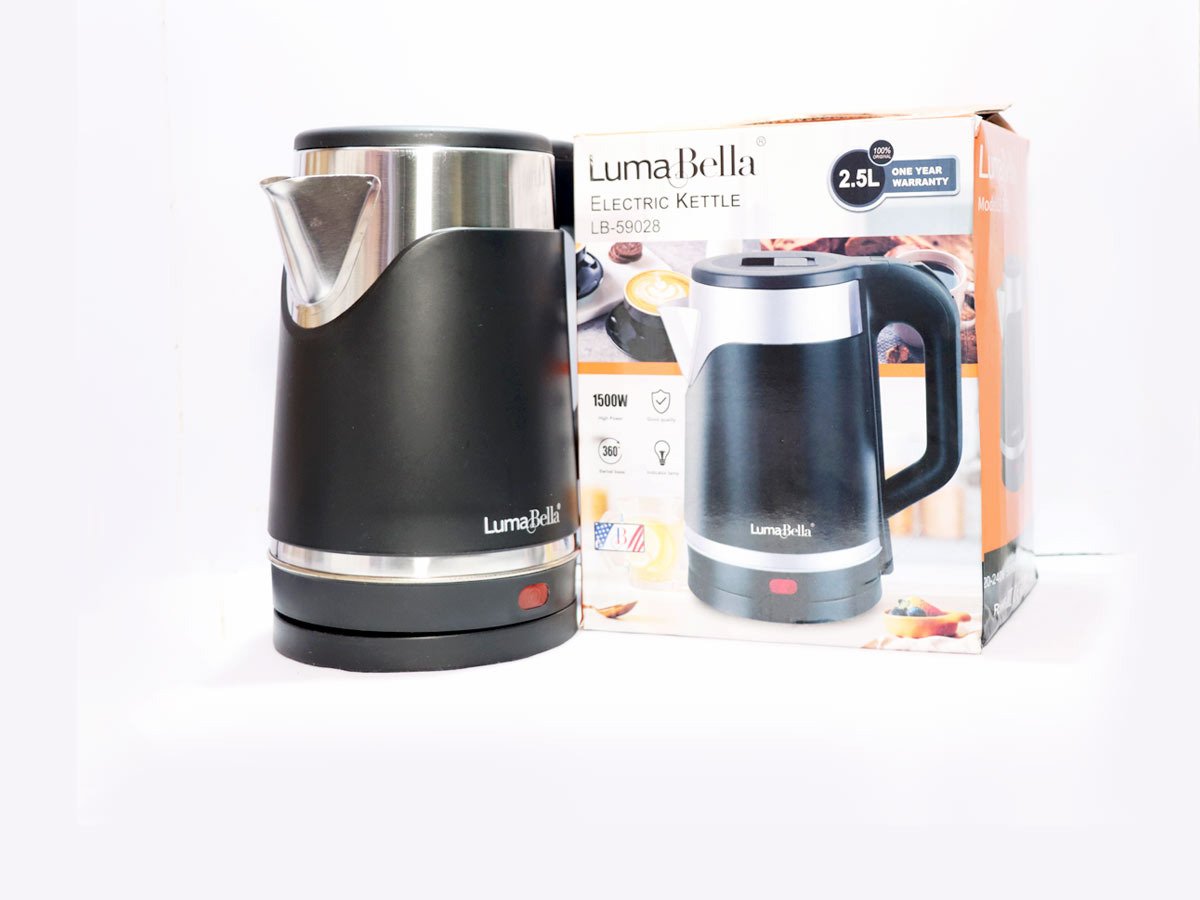 The LumaBella Electric Kettle LB-59028 is a powerful and efficient kitchen appliance designed for fast boiling. With a 1500W heating element and a generous 2.5-liter capacity, it is ideal for making tea, coffee, or boiling water quickly for various uses. The 360° cordless base allows for easy handling and pouring from any direction.