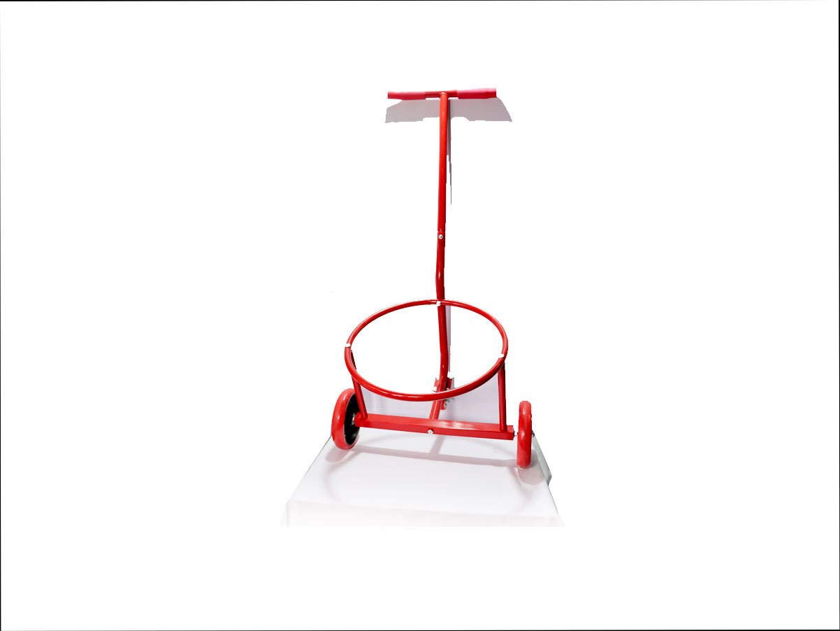 This is a portable fire extinguisher trolley stand, designed to carry one large-sized fire extinguisher cylinder. It is ideal for industrial, commercial, and high-risk areas where mobility and quick access to fire extinguishers are crucial.