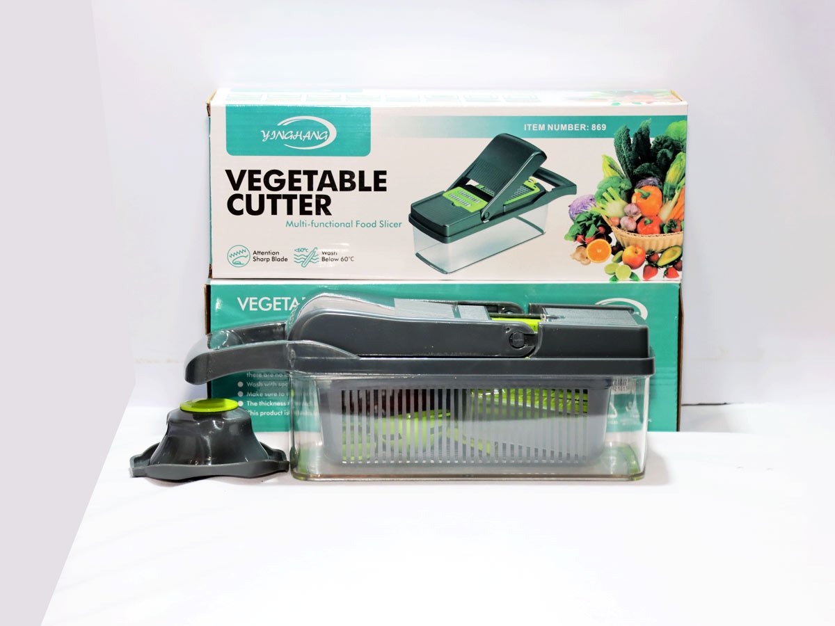 This multi-functional vegetable cutter is designed for fast, safe, and versatile food preparation. It features interchangeable sharp blades for slicing, dicing, grating, and chopping a variety of vegetables and fruits. The integrated container catches cut food neatly, reducing mess and saving time.